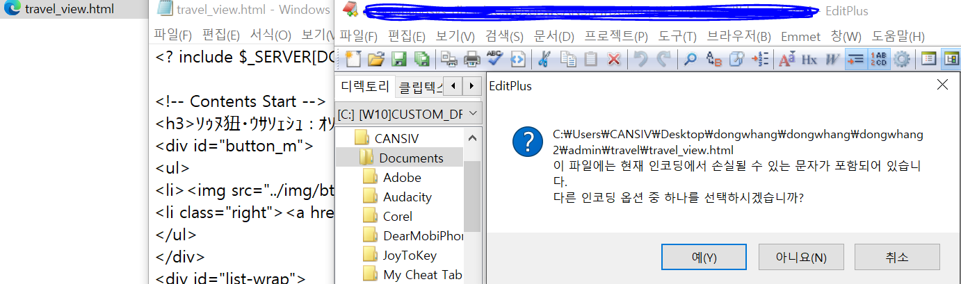 에디트 플러스에 파일을 던져 넣으면.. 이런 창이 뜬다..